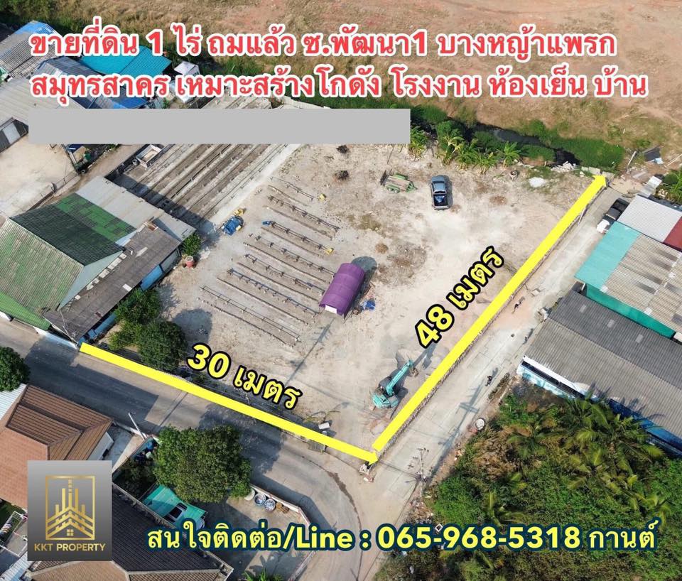ขายที่ดินสมุทรสาคร บางหญ้าแพรก ขนาด 1 ไร่ ถมแล้ว ติดถนนสาธารณะสองด้าน